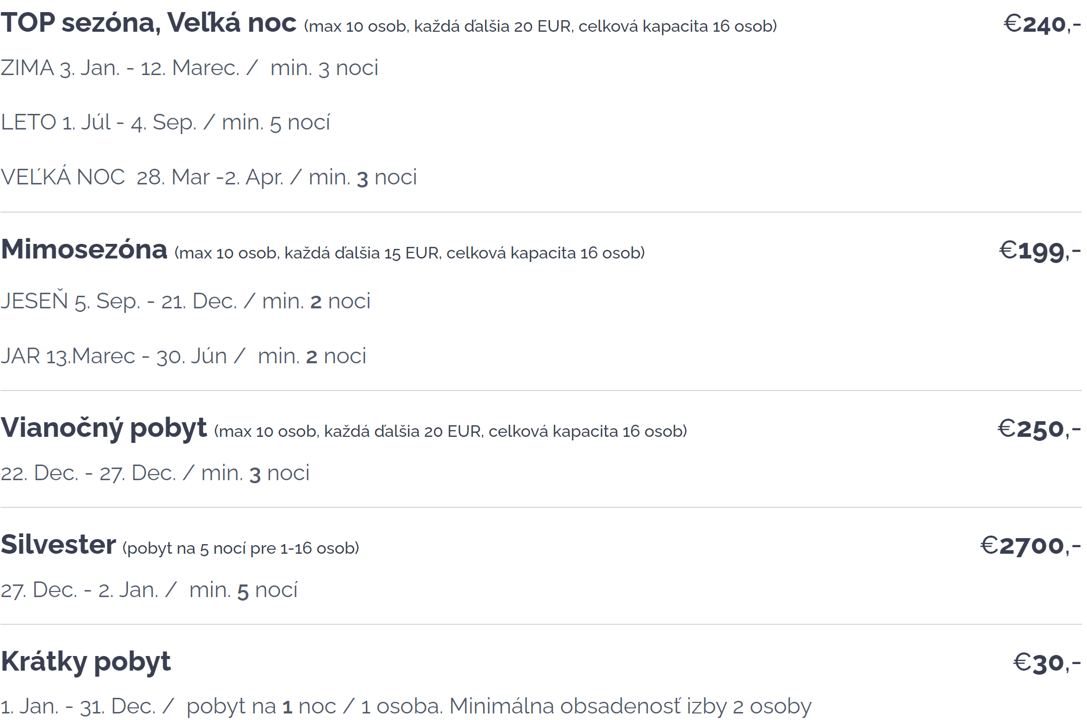 Ne gondoljuk azt, hogy a vendéget érdekli a bonyolult árszabásunk (előszezon, hétvége, min. éj, takarítási idő stb.) Ő azt szeretné tudni, hogy amikor ő nyaralna, milyen feltételekkel tudja ezt nálad megtenni.